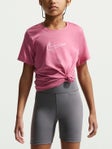 The Nike Girl's Performance Graphic Top is ready for any activity her day brings. It features a round neckline, shaped hem, Dri-FIT moisture wicking performance, and a Nike swoosh printed on center chest.